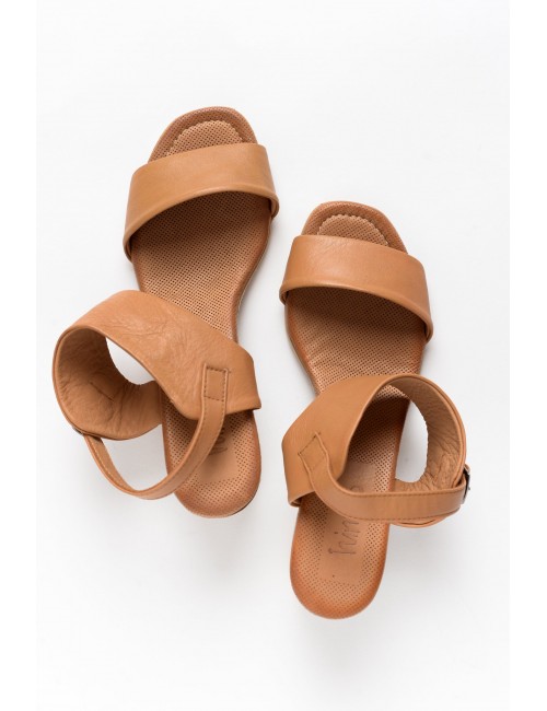 - A front tan wider strap to support your foot and a back thick adjustable ankle strap with a metallic buckle