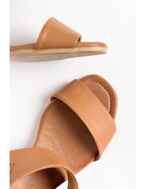 - A stunning tan leather heel with textured foot bed for extra support and comfort