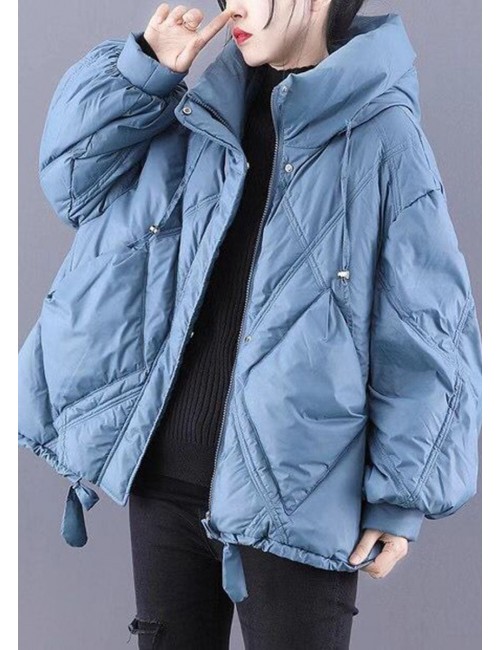 Unique Blue hooded Cloak Warm Winter Duck Down Puffers Coat