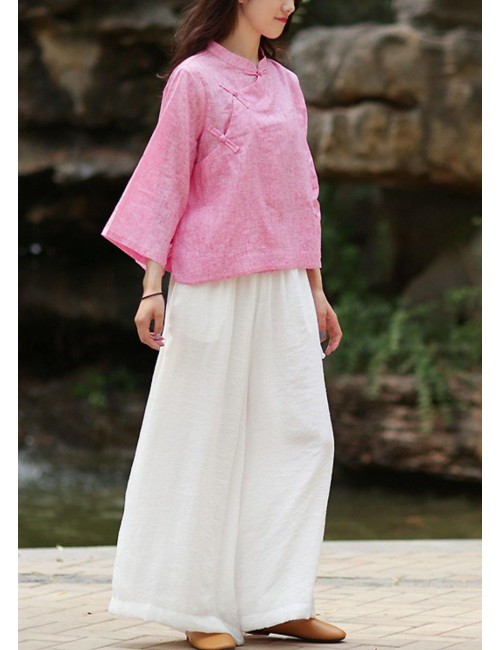 Women's trousers elastic waist tie Tencel cotton loose retro trousers